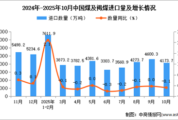 中商情报网讯:据中商产业研究院数据库显示,2025年10月中国煤及褐煤进口量4173.7万吨,同比下...【详情】