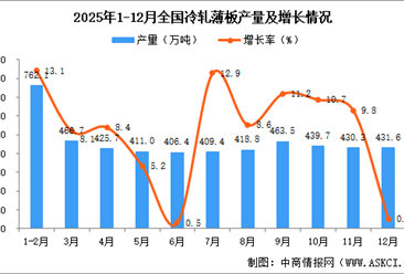 中商情报网讯:据中商产业研究院数据库,2025年12月全国冷轧薄板当月产量与去年同期相比增长。2...【详情】