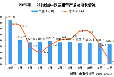 中商情报网讯:据中商产业研究院数据库显示,2025年12月全国中厚宽钢带当月产量与去年同期相比...【详情】