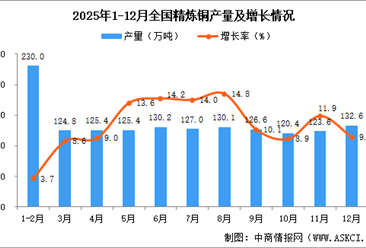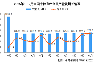 中商情报网讯:据中商产业研究院数据库,2025年12月全国十种有色金属当月产量与去年同期相比增...【详情】