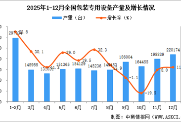 中商情报网讯:据中商产业研究院数据库,2025年12月全国包装专用设备当月产量与去年同期相比下...【详情】
