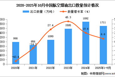 中商情报网讯:据中商产业研究院数据库显示,2024年我国航空煤油的出口量1892万吨,同比增长19.6%。最新数据显示,2025年1-10月中国航空煤油出口量1711万吨,同比增长6.6%...【详情】