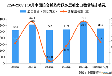 中商情报网讯:据中商产业研究院数据库显示,2024年我国胶合板及类似多层板出口量1319万立方米,同比增长23.1%。最新数据显示,2025年1-10月中国胶合板及类似多层板出口量...【详情】
