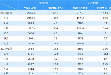 中商情报网讯:据中国汽车工业协会统计分析,2018年6月,汽车产销环比略有下降,同比呈小幅增长。1-6月,汽车产销保持稳定增长,与1-5月相比,产量增速有所提升,销量增速...【详情】