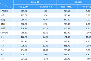 中商情报网讯:据中汽协数据显示,2018年7月,汽车产销环比呈较快下降,同比降幅略低,本月产销率为92.48%,为去年2月以来新低。1-7月,汽车产销继续保持小幅增长,产量增...【详情】