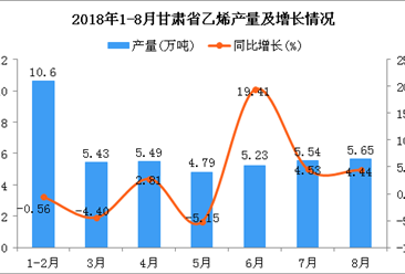 中商情报网讯:据中商产业研究院数据库显示,2018年5-7月甘肃省乙烯产量呈小幅度增长趋势,2018年7月甘肃省乙烯产量为5.54万吨,同比增长4.53%。2018年8月甘肃省乙烯产量...【详情】