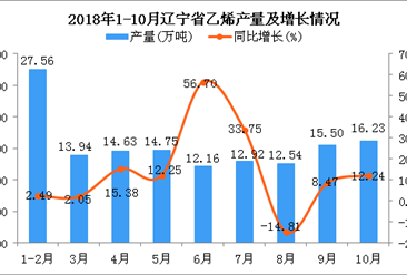 中商情报网讯:据中商产业研究院数据库显示,2018年8-10月辽宁省乙烯产量呈增长趋势,2018年10月辽宁省乙烯产量增长幅度不大,同比增长1成;2018年10月辽宁省乙烯产量为16...【详情】