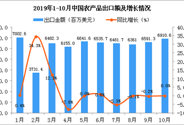 中商情报网讯:据中商产业研究院数据库显示,2019年1-3季度中国农产品出口金额有所增长,增长12.88%。2019年10月中国农产品出口金额为6910.6百万美元,同比0%。 数据来...【详情】