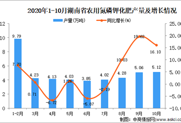 中商情报网讯:据中商产业研究院数据库显示,2020年10月湖南省农用氮磷钾化肥产量为5.12万吨,同比增长16.1%。 数据来源:中商产业研究院数据库 2020年10月湖南省农用氮...【详情】