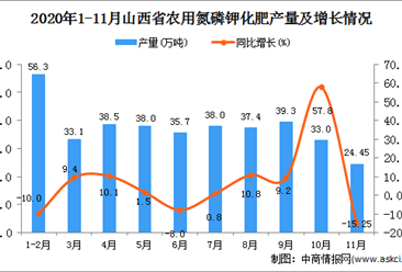 中商情报网讯:据中商产业研究院数据库显示,2020年11月山西省农用氮磷钾化肥产量为24.45万吨,同比下降15.25%。 数据来源:中商产业研究院数据库 2020年11月山西省农用...【详情】