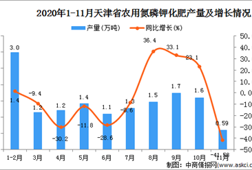 中商情报网讯:据中商产业研究院数据库显示,2020年11月天津市农用氮磷钾化肥产量为0.59万吨,同比下降41.58%。 数据来源:中商产业研究院数据库 2020年11月天津市农用氮...【详情】