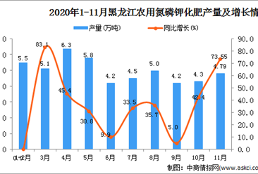 中商情报网讯:据中商产业研究院数据库显示,2020年11月黑龙江省农用氮磷钾化肥产量为4.79万吨,同比增长4.79%。 数据来源:中商产业研究院数据库 2020年11月黑龙江省农...【详情】