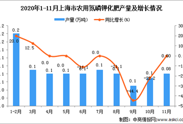 中商情报网讯:据中商产业研究院数据库显示,2020年11月上海市农用氮磷钾化肥产量为0.08万吨,同比无变化。 数据来源:中商产业研究院数据库 2020年11月上海市农用氮磷钾...【详情】