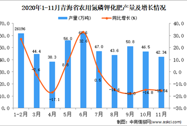 中商情报网讯:据中商产业研究院数据库显示,2020年11月青海省农用氮磷钾化肥产量为42.34万吨,同比下降15.54%。 数据来源:中商产业研究院数据库 2020年11月青海省农用...【详情】