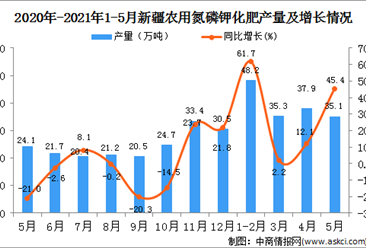 中商情报网讯:据中商产业研究院数据库显示,2021年5月新疆农用氮磷钾化肥产量为35.1万吨,同比增长45.4%。 数据来源:中商产业研究院数据库 2021年5月新疆农用氮磷钾化...【详情】