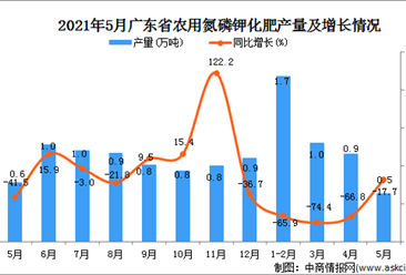 中商情报网讯:据中商产业研究院数据库显示,2021年5月广东省农用氮磷钾化肥产量为0.5万吨,同比下降17.7%。 数据来源:中商产业研究院数据库 2021年5月广东省农用氮磷钾...【详情】