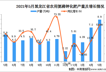 中商情报网讯:据中商产业研究院数据库显示,2021年5月黑龙江农用氮磷钾化肥产量为8.9万吨,同比增长53.98%。 数据来源:中商产业研究院数据库 2021年5月黑龙江农用氮磷...【详情】