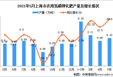 中商情报网讯:据中商产业研究院数据库显示,2021年5月上海市农用氮磷钾化肥产量为0.1万吨,同比增长25%。 数据来源:中商产业研究院数据库 2021年5月上海市农用氮磷钾化...【详情】