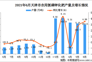 中商情报网讯:据中商产业研究院数据库显示,2021年6月天津市农用氮磷钾化肥产量为4.99万吨,同比增长353.6%。 数据来源:中商产业研究院数据库 2021年6月天津市农用氮磷...【详情】