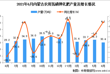 中商情报网讯:据中商产业研究院数据库显示,2021年6月内蒙古农用氮磷钾化肥产量为30.4万吨,同比上升4.1%。 数据来源:中商产业研究院数据库 2021年6月内蒙古农用氮磷钾...【详情】
