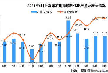 中商情报网讯:据中商产业研究院数据库显示,2021年6月上海市农用氮磷钾化肥产量为0.1万吨,同比上升25%。 数据来源:中商产业研究院数据库 2021年6月上海市农用氮磷钾化...【详情】
