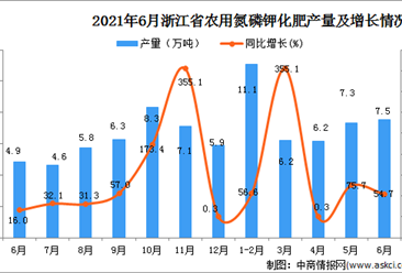 中商情报网讯:据中商产业研究院数据库显示,2021年6月浙江省农用氮磷钾化肥产量为7.5万吨,同比上升54.7%。 数据来源:中商产业研究院数据库 2021年6月浙江省农用氮磷钾...【详情】