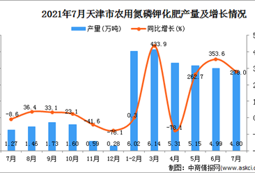 中商情报网讯:据中商产业研究院数据库显示,2021年7月天津市农用氮磷钾化肥为4.8万吨,同比上升278%。 数据来源:中商产业研究院数据库 2021年7月天津市农用氮磷钾化肥...【详情】