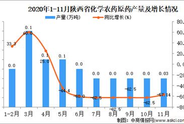 中商情报网讯:据中商产业研究院数据库显示,2020年11月陕西省化学农药原药产量为0.03万吨,同比下降57.14%。 数据来源:中商产业研究院数据库 2020年11月陕西省化学农...【详情】