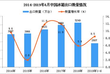中商情报网讯:据中商产业研究院数据库显示,2019年1-2季度中国冰箱出口量逐渐增长,2019年1-6月中国冰箱出口量为2807万台,同比增长8.5%。 数据来源:中商产业研究院数...【详情】
