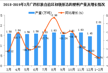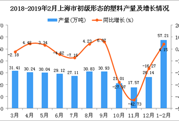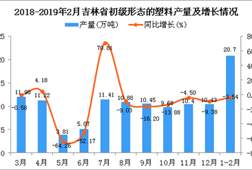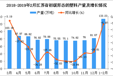 中商情报网讯:据中商产业研究院数据库显示,2018年1-4季度江苏省初级形态的塑料产量呈震荡下行;2019年1-2月江苏省初级形态的塑料产量为133.23万吨,同比下降5.87%。 ...【详情】