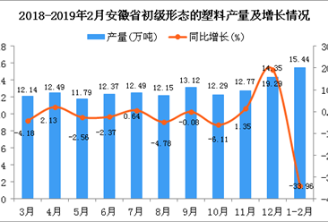中商情报网讯:据中商产业研究院数据库显示,2018年1-4季度安徽省初级形态的塑料产量呈增长趋势,2019年1-2月安徽省初级形态的塑料产量为15.44万吨,同比下降33.96%。 ...【详情】