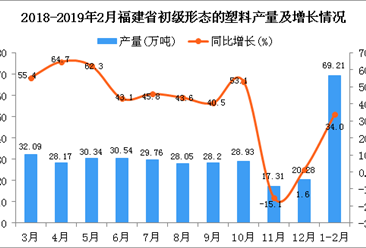 中商情报网讯:据中商产业研究院数据库显示,2018年2季度福建省初级形态的塑料产量有小幅度增长,2018年3-4季度福建省初级形态的塑料产量下降;2019年1-2月福建省初级形态...【详情】