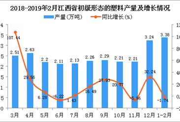 中商情报网讯:据中商产业研究院数据库显示,2018年1-4季度江西省初级形态的塑料产量整体呈增长趋势,2019年1-2月江西省初级形态的塑料产量为3.38万吨,同比下降1.74%。 ...【详情】