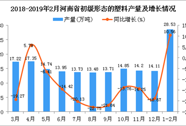 中商情报网讯:据中商产业研究院数据库显示,2018年1-3季度湖南省初级形态的塑料产量呈下降趋势,2018年4季度湖南省初级形态的塑料产量有所增长;2019年1-2月湖南省初级形...【详情】