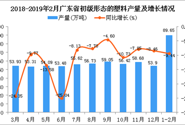 中商情报网讯:据中商产业研究院数据库显示,2018年1-3季度广东省初级形态的塑料产量逐渐增长,2018年4季度广东省初级形态的塑料产量回落;2019年1-2月广东省初级形态的塑...【详情】