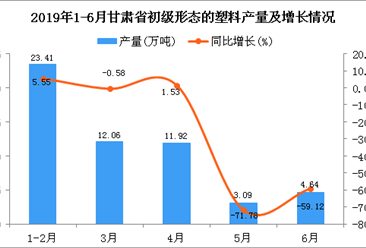 中商情报网讯:据中商产业研究院数据库显示,2019年1-2季度甘肃省初级形态的塑料产量有所下降,2019年6月甘肃省初级形态的塑料产量为4.64万吨,同比下降59.12%。2019年上...【详情】