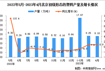中商情报网讯:据中商产业研究院数据库显示,2023年4月北京初级形态的塑料当月产量与去年同期相比增长。2023年4月北京初级形态的塑料产量为9.18万吨,同比增长8.9%。2023...【详情】