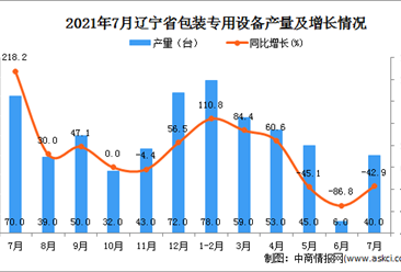 中商情报网讯:据中商产业研究院数据库显示,2021年7月辽宁省包装专用设备40台,同比下降42.9%。 数据来源:中商产业研究院数据库 2021年7月辽宁省包装专用设备增长情况 ...【详情】