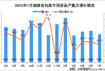 中商情报网讯:据中商产业研究院数据库显示,2021年7月福建省包装专用设备2010台,同比下降4.1%。 数据来源:中商产业研究院数据库 2021年7月福建省包装专用设备增长情况...【详情】