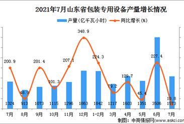 中商情报网讯:据中商产业研究院数据库显示,2021年7月山东省包装专用设备1573台,同比增长18.8%。 数据来源:中商产业研究院数据库 2021年7月山东省包装专用设备增长情...【详情】