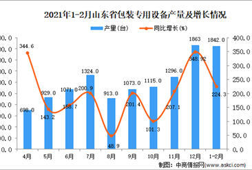 中商情报网讯:据中商产业研究院数据库显示,2021年1-2月山东省包装专用设备产量为1842台,同比增长224.3%。 数据来源:中商产业研究院数据库 2021年1-2月山东省包装专...【详情】