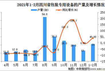 中商情报网讯:据中商产业研究院数据库显示,2021年1-2月四川省包装专用设备的产量为21台,同比增长为40% 数据来源:中商产业研究院数据库 2021年1-2月四川省包装专用设...【详情】