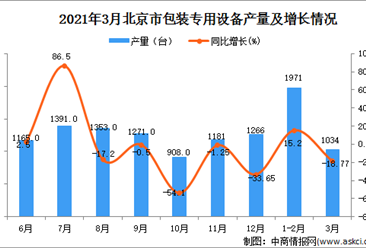中商情报网讯:据中商产业研究院数据库显示,2021年3月北京市包装专用设备的产量为1034台,同比下降为18.77% 数据来源:中商产业研究院数据库 2021年3月北京市包装专用...【详情】