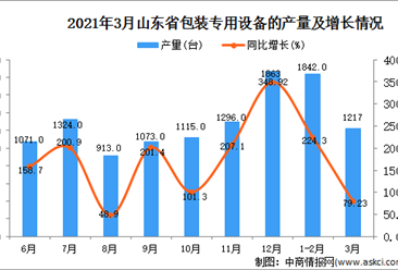 中商情报网讯:据中商产业研究院数据库显示,2021年3月山东省包装专用设备产量为1217台,同比增长为79.23% 数据来源:中商产业研究院数据库 2021年3月山东省包装专用设...【详情】