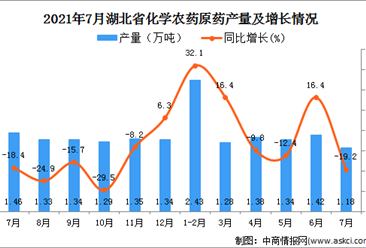 中商情报网讯:据中商产业研究院数据库显示,2021年7月湖北省化学农药原药1.18万吨,同比下降19.2%。 数据来源:中商产业研究院数据库 2021年7月湖北省化学农药原药增长...【详情】