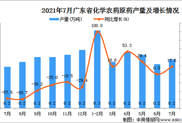 中商情报网讯:据中商产业研究院数据库显示,2021年7月广东省化学农药原药0.2万吨,同比增长17.6%。 数据来源:中商产业研究院数据库 2021年7月广东省化学农药原药增长...【详情】
