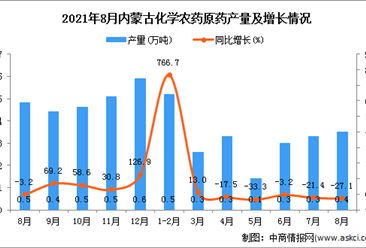中商情报网讯:据中商产业研究院数据库显示,2021年8月内蒙古化学农药原药0.4万吨,同比下降27.1%。 数据来源:中商产业研究院数据库 2021年8月内蒙古化学农药原药增长...【详情】