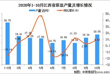 中商情报网讯:据中商产业研究院数据库显示,2020年10月江西省原盐产量为20.55万吨,同比增长9.13%。 数据来源:中商产业研究院数据库 2020年10月江西省原盐产量增长情...【详情】