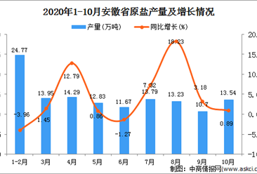 中商情报网讯:据中商产业研究院数据库显示,2020年10月安徽省原盐产量为13.54万吨,同比增长0.89%。 数据来源:中商产业研究院数据库 2020年10月安徽省原盐产量增长情...【详情】