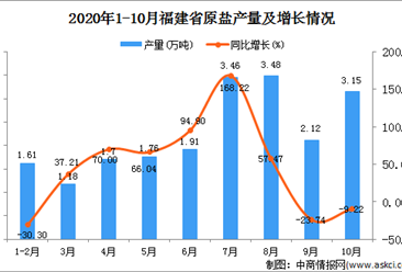 中商情报网讯:据中商产业研究院数据库显示,2020年10月福建省原盐产量为3.15万吨,同比下降9.22%。 数据来源:中商产业研究院数据库 2020年10月福建省原盐产量增长情况...【详情】